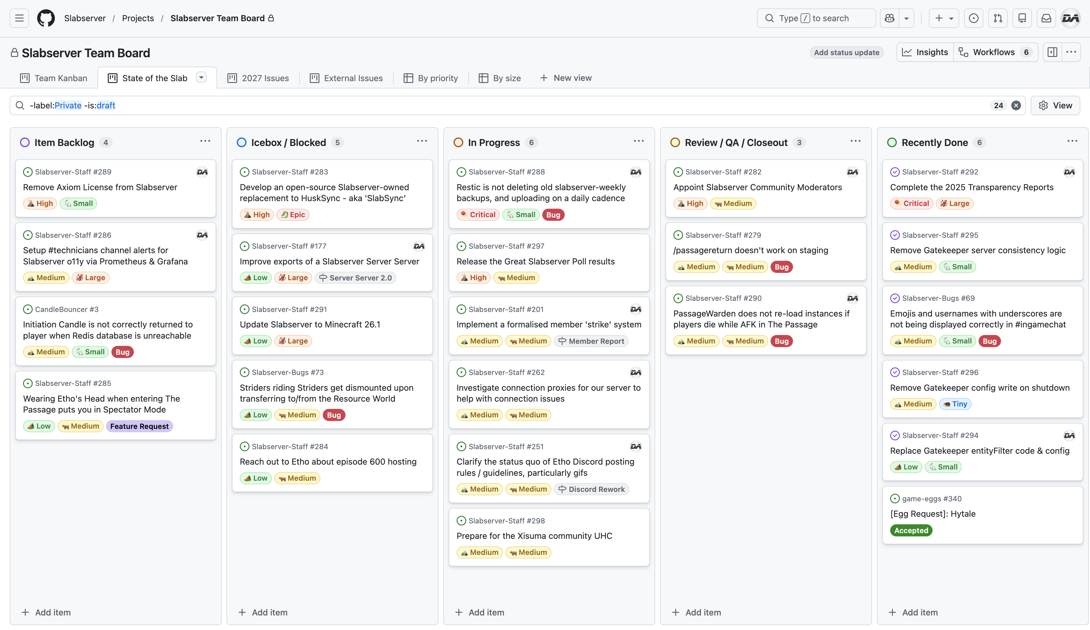 ⁵ The Priority and Size labels for our State of the Slab Board are a rough estimate of the amount of work involved, and quite honestly are just assigned based on vibes.