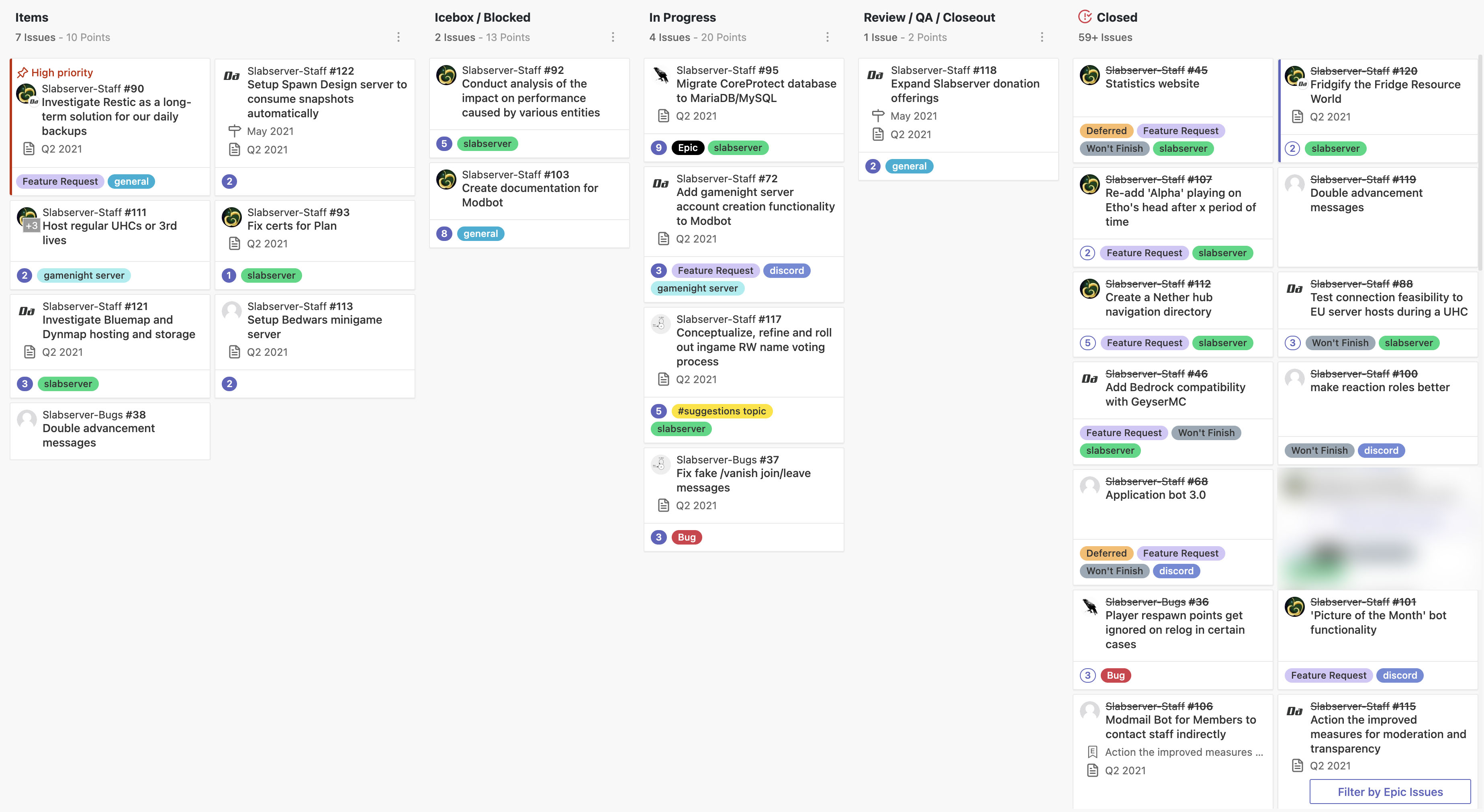 Current staff tasks being tracked as of 8th of May 2021⁴: