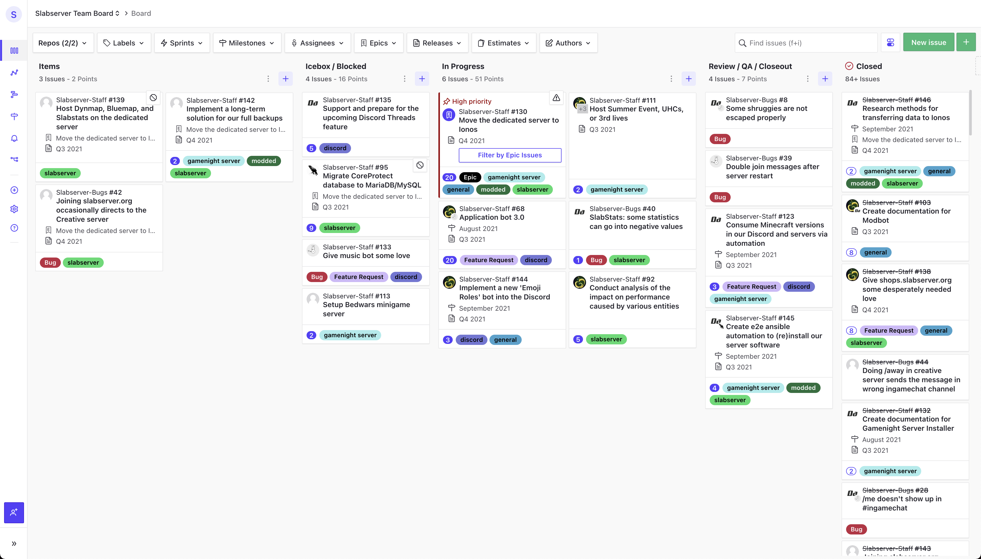 Current staff tasks being tracked as of 12th of October 2021⁴:
